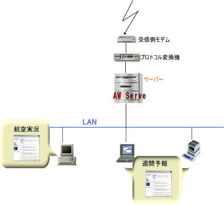 LANに接続された、すべてのコンピュータから気象情報の閲覧や検索を行うことができます。